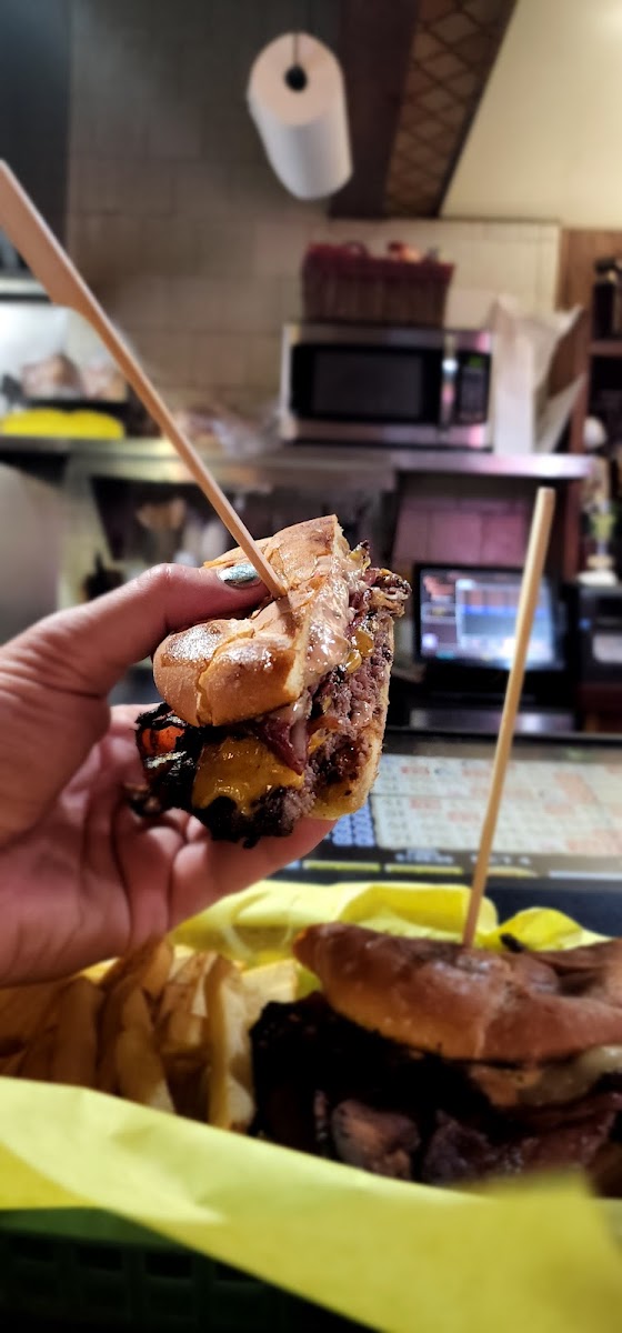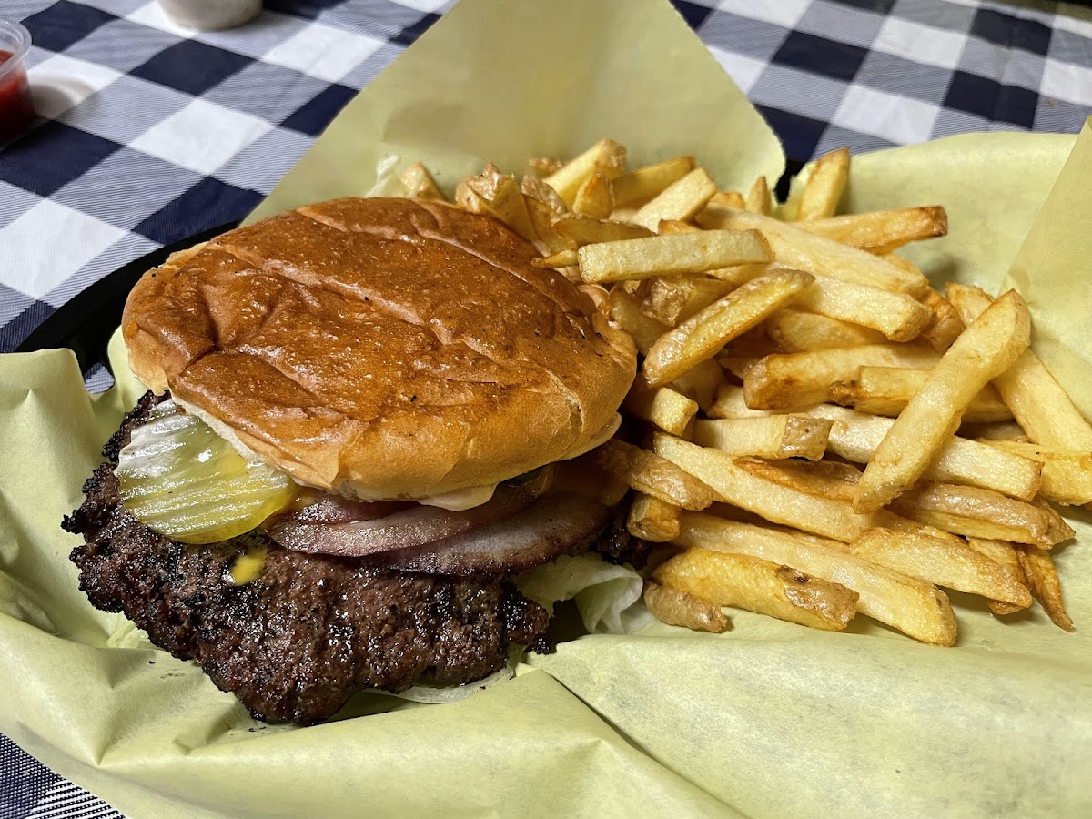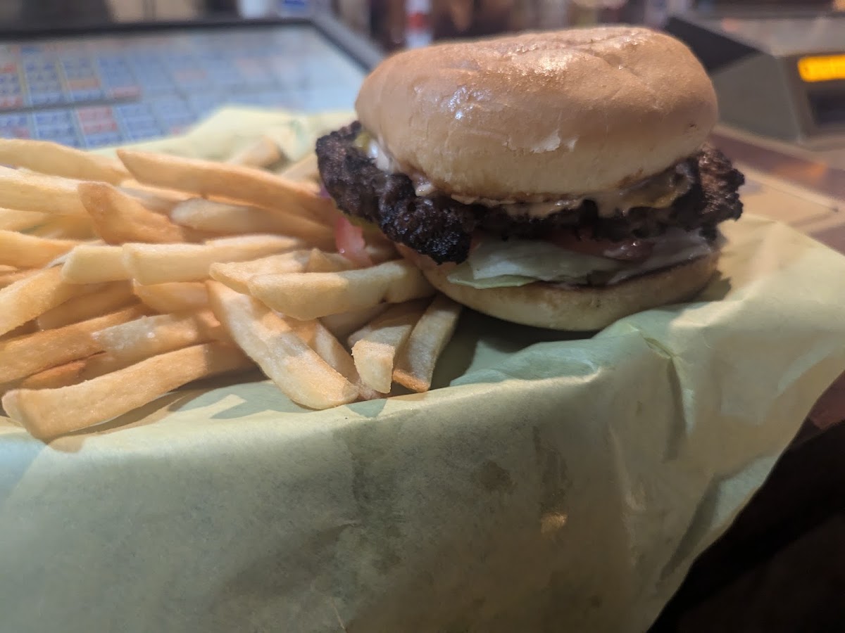 I drove down from Tahoe and was looking for a dive with an amazing burger. My first reaction walking in: “have I overshot my target”? I grew even more skeptical as the bartender nonchalantly proceeded to prepare the burger in front of me. But that first bite quite literally made me eat my prejudice. I was drowned in char and juices, and inhaled the entire platter in minutes. The fries were a bit crispy for my taste, but the white sauce (ranch?) deserves a special mention - absolutely delicious. Truly a superlative dive bar burger. Totally worth the drive from Tahoe’s overpriced and mediocre offerings.